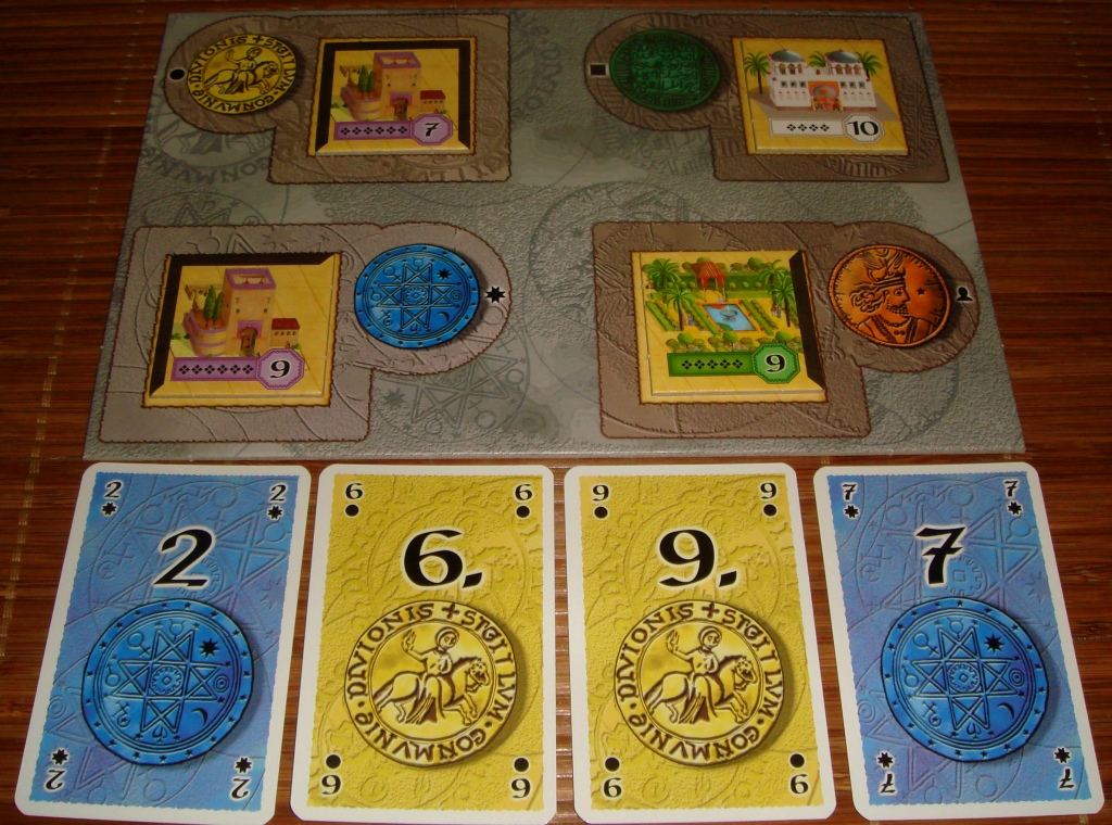 Ход игры. Цель игры – набрать больше всего победных очков. Игроки получают очки в течение трёх этапов за наибольшее количество построек определённого типа и за длину стены вокруг своего города. В начале игры формируется рынок построек, каждому игроку выдаётся некоторое количество денег и карточка, на которую можно складывать неиспользованные здания.