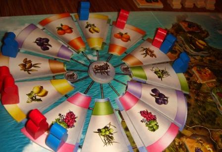Игровое поле – это карта чудесного испанского острова Мальорка, жители которого жаждут фруктов. Также на карте размещена огромная ветряная мельница, на которой вам и будут выдаваться эти самые фрукты.