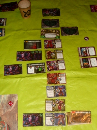 Ее было не так просто убить, пока она была кристальной, ей невозможно было нанести раны. Нужно было как-то разбить ее кристальную оболочку. Мы принялись бить монстров, открывать сундуки и токены квестов. Когда мы открыли последнюю фишку квеста, раздался сильный звон, от которого кристаллы разрушились, и мы смогли убить Нагу. Правда, после ее смерти раздался грохот, стены и потолок начали рушиться. Мы еле унесли ноги, прихватив лишь немного золотых яблок. Вот такое вот путешествие. В этой партии Оверлорду не везло на кубиках, он очень часто промахивался, а крыса мешала появлению новых монстров (за что в конце и поплатилась – см.фото).