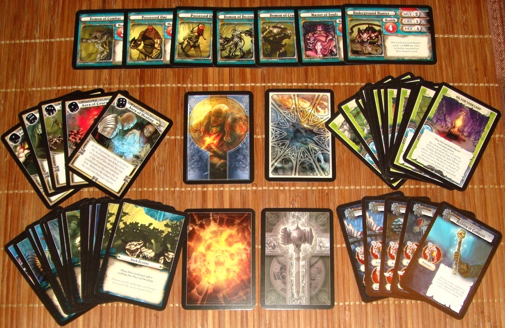 Карты различных типов: 6 карт магических способностей Спасителя, 6 карт дополнительных возможностей героев, 15 карт временных преимуществ героев, 16 карт событий и 7 карточек воплощений Демона.