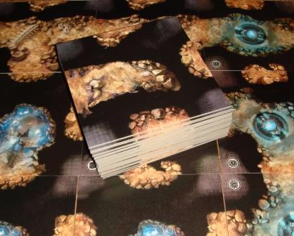 36 квадратных тайлов подземелья, обозначающих туннели и комнаты, позволяют составлять различные комбинации для формирования поля битвы.