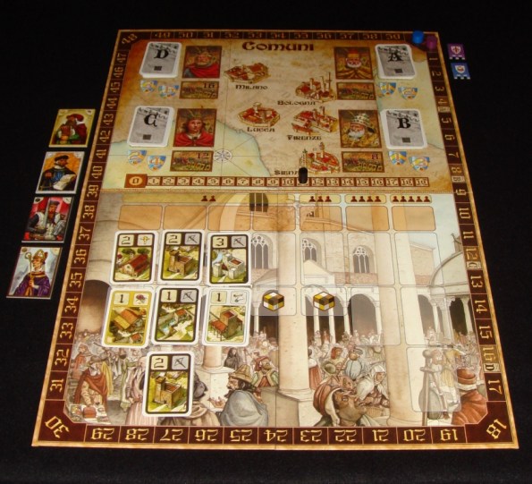 Тысячу лет назад несколько городов-государств соревновались за доминирование в Италии. Они назывались comuni (коммуны). В одноименной игре участники становятся во главе своей коммуны и занимаются ее развитием и процветанием. В партии может принимать участие от двух до пяти человек. Время игры: час-полтора.