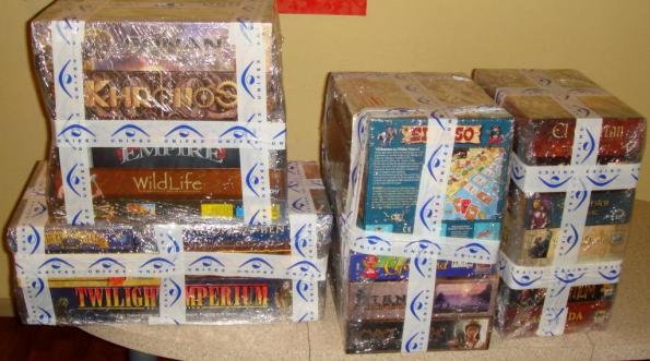 Игры я получил из Эстонии самовывозом, там был человек неравнодушный к этой болезни. Сам он брал похоже с немецких магазинов (много немецких локализаций) по очень привлекательной цене (наверное связано с вышесказанным). Игры я выбирал по рейтингам (проглядывал БГГ и российские отзывы), красоте (внешний вид имел не последнее значение), максимально языконезависимые (у большинства были или перевод правил на русский или подробное описание – не люблю над этим мозг кипятить) и по цене (что-то было взято от жадности) + что-то было подарено за объем – вот и все.