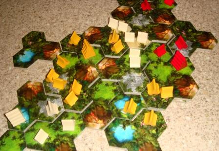 От Талувы я получил то, что и ожидал. Вроде бы интересная тактическая головоломка: каждый раз новая местность, несколько путей к победе, но чего-то не хватает. Абстрактные игры я не очень люблю, и, не смотря на прослеживающуюся связь темы с игровым процессом, игра показалась именно такой. Наверное, всё это из-за того, что каждый ход сводится к тому, что приходится чисто автоматически подстраиваться под ситуацию и реагировать на действия соперников. Надо будет распробовать Taluva и сыграть ещё пару партий, тем более Кате игра понравилась.