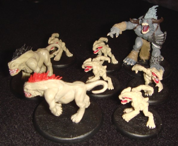 2 одинаковые фигурки Адских гончих с разными причёсками и карточками характеристик.