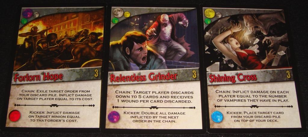 Не знаю почему, но изначально к дополнению я относился скептически, т.к. думал, что кроме “кормёжки” ничего нового не увижу. Оказалось же, наоборот, feed – это не основное нововведение, а одно из нескольких интересных моментов. Для меня самым приятным оказалось смещение акцента с цепи в сторону других фаз хода. В общем, хорошее дополнение, буду экспериментировать дальше, смешивая Martial Law с базовой игрой. Трепещите, вампиры и прочая нечисть!