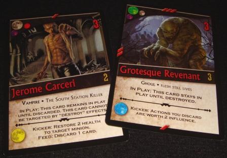 Новое свойство feed. На картах появилось свойство так называемой кормёжки, которое позволяет повторно активировать эффект цепи (chain) или кикера (kicker). Да что там повторно, свойство можно использовать, пока вам это позволяют “средства”. Плата в данном случае – сброс 1-2 карт с руки или добровольное нанесение раны себе любимому. Карт с таким свойством не много, зато польза от некоторых весьма существенная. Например: одна из карт позволяет ввести в игру миньона из сброса, а благодаря feed’у за каждую сброшенную карту игрок может ввести одного дополнительного защитника. Получается, что если и на руках и в сбросе карт достаточно, то можно разжиться на неплохую подмогу.