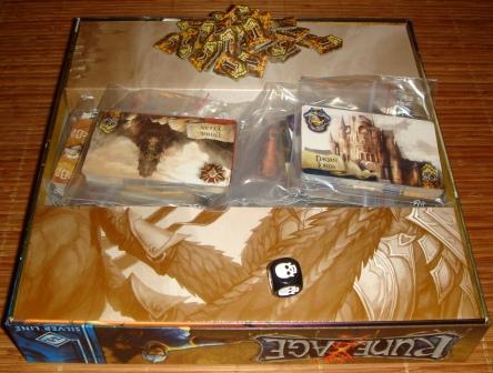 Набор компонентов состоит из правил на двадцати страницах, 252 карт, 38 жетонов и шестигранного кубика. После сортировки и выдавливания всё это добро занимает от силы 1/4 часть пространства коробки – такой вот очередной “тонкий” намёк на дополнения.