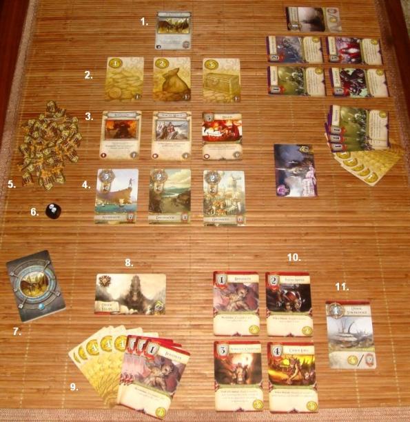 10 и 11 – личные “казармы” игрока: карты воинов и крепостей.