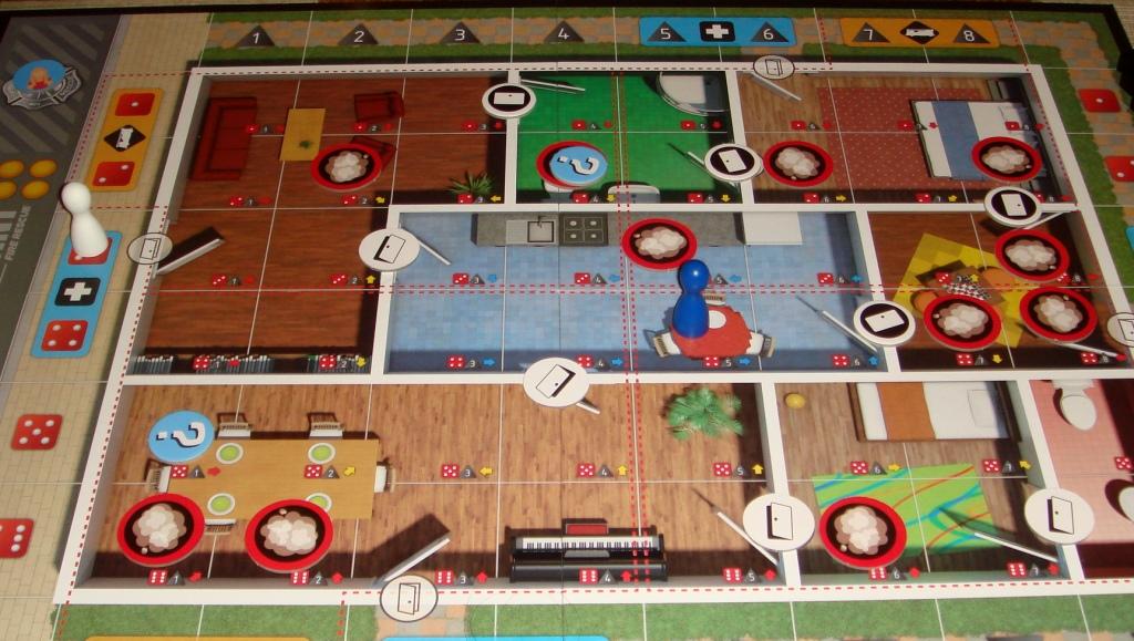 После серии взрывов волна пламени, начавшая свой путь из центра здания, изрядно потрепала кухню и с каждым последующим шагом вынуждала нас один за другим выкладывать на стены комнаты чёрные кубики повреждений. Неудивительно, что они закончились буквально за пару ходов, тем самым оповестив нас о провале миссии. Дом был разрушен, спасти нам удалось только двух человек.