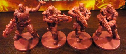Докрасил бойцов из Gears of War. Вернее домучил. Пожалуй, это самые детализированные фигурки, с которыми мне довелось иметь дело. Результат меня вполне устраивает, а Катя как всегда в восторге. Осталось всего ничего, покрасить 28 миниатюрок Локустов и можно продолжить играть 🙂 Далее ещё пара фоток.