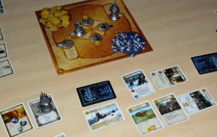 A Game of Thrones: The Card Game. Познакомился с очередной колодостроительной игрой. Вчетвером за два с половиной часа по нужному для победы количеству очков не добрались даже до середины. По сути, карточная Игра престолов, это тот же Magic: The Gathering, только более комплексный. К покупке карт и сражениям тут добавлены фазы розыгрыша так называемых карт замыслов и выбора титулов, которые обуславливают характеристики и роль игрока на текущий раунд.