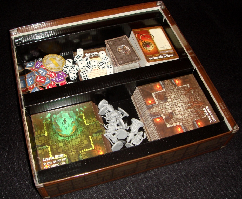 За счёт того, что игроки сами формируют игровое поле из случайно вскрытых тайлов, каждую партию подземелье будет иметь разную “планировку”. Монстров и ловушек хватает, 10 навыков на каждого героя тоже достаточно, и это при том, что по ходу партии удаётся заполучить 2-3, ну максимум 4 навыка.
