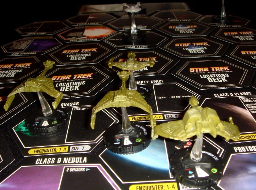 Невидимка. В основном это действие касается кораблей клингонов, которые имеют свойства становиться невидимыми. Выбрав это действие, игрок убирает фигурку корабля с поля, а вместо неё кладёт жетон невидимки. Корабль-невидимка не может предпринимать никаких действий, кроме как летать. Напасть на него тоже нельзя. Если на поле будет только один жетон невидимки, то просканировать и раскрыть его не составит труда, поэтому невидимке доступно ещё одно действие – он может делать зеркальные отображения собственного корабля (множить жетоны невидимок на поле), чтобы запутать противника.