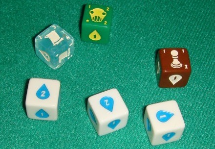 2. Бросок кубиков. Тут всё просто – берём из мешка 6 кубиков и швыряем их на стол. Смотрим на выпавшие грани, плюёмся на проклятый рандом или радуемся его величеству случаю.