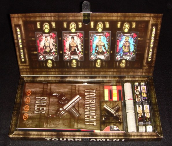 На днях благодаря Кате ко мне в руки попала одна занятная разработка от местного автора Евгения Васильева – настольная игра Tournament. Игрушка не новая, но в свободной продаже я её не видел. Судя по всему, автор делал игру скорей для себя, т.к. тема и механика довольно специфические – перед нами настольный вариант компьютерных шутеров Quake и Unreal Tournament, основанный на незамысловатой механике “кинь-двинь”, а точнее, “кинь-двинь-кинь-выстрели”.