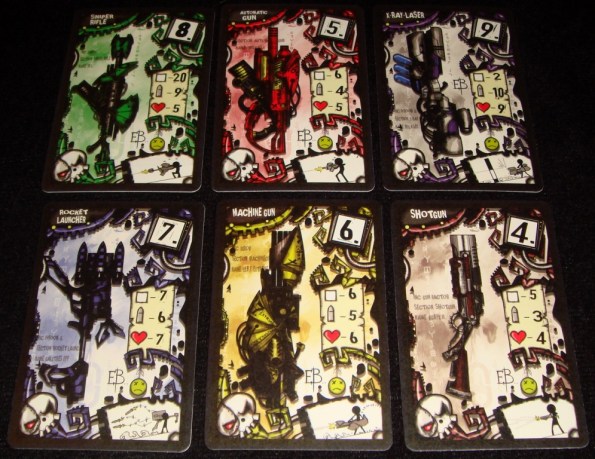 А вот карты по качеству напоминают обычный пнп, они без какого-либо покрытия и тонкие. Это, кстати, карточки оружия.