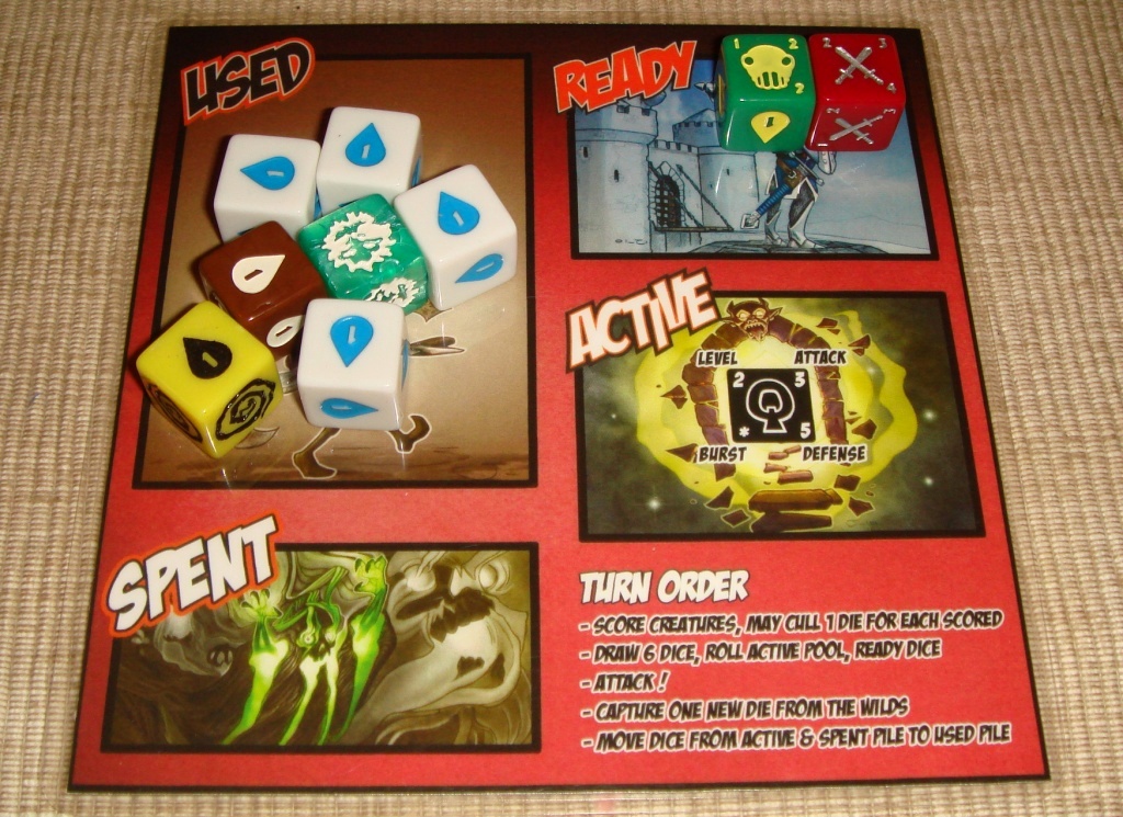 На BGG в разделе файлы для Quarriors! есть куча вариантов ковриков, но мне понравился лишь один – скачать его можно вот тут, за что спасибо товарищу Тому Ховарду aka GeckoTH.