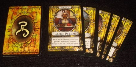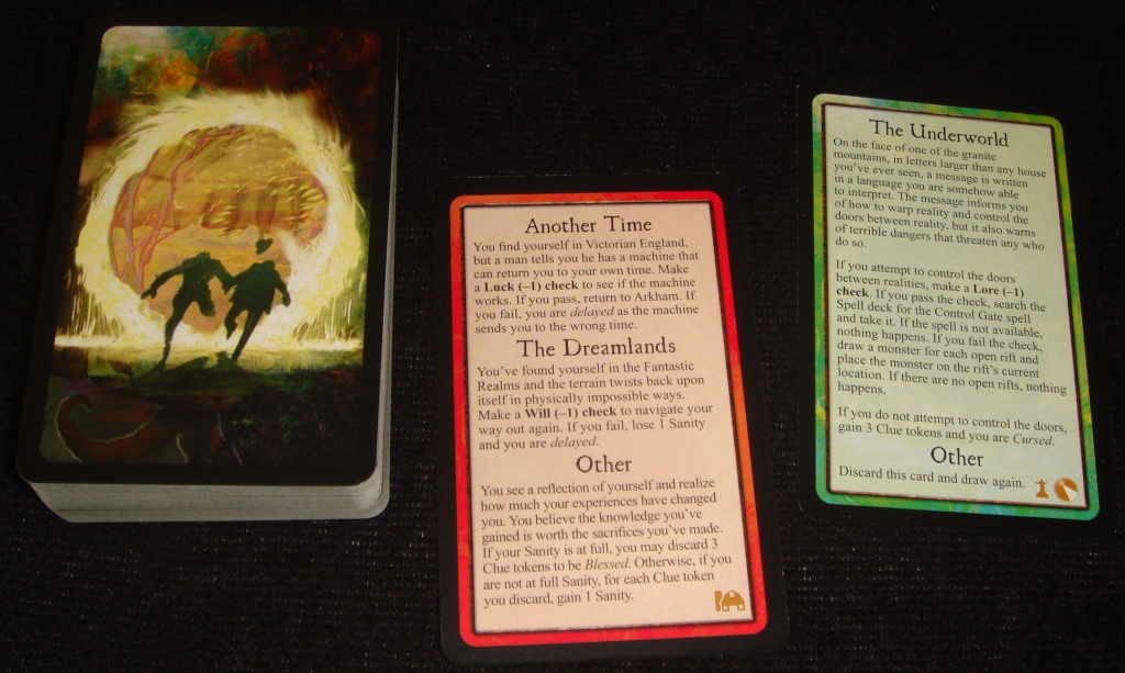 На новых картах Мифа по два места открытия врат и появления фишки улики. Сверху указана какая-нибудь локация из дополнения, а снизу – из Аркхэма. Если это дополнение присутствует в игре, то врата/улика появляются там, если нет, то все события происходят как обычно в Аркхэме.