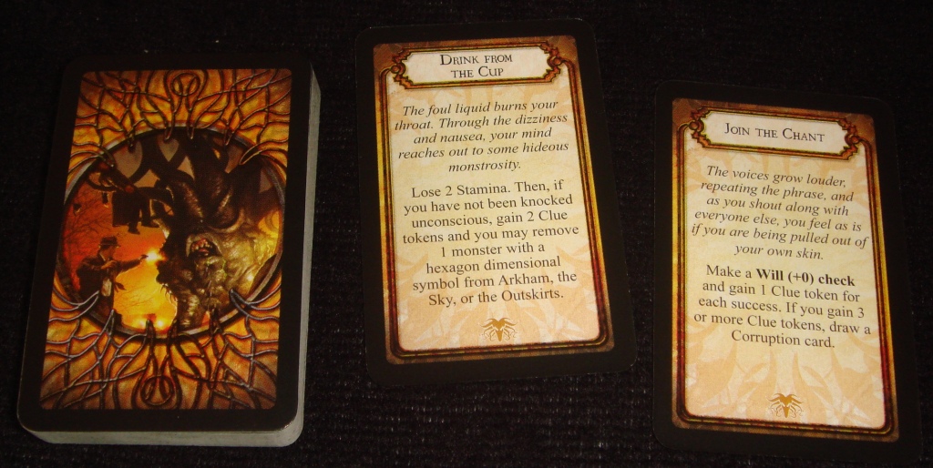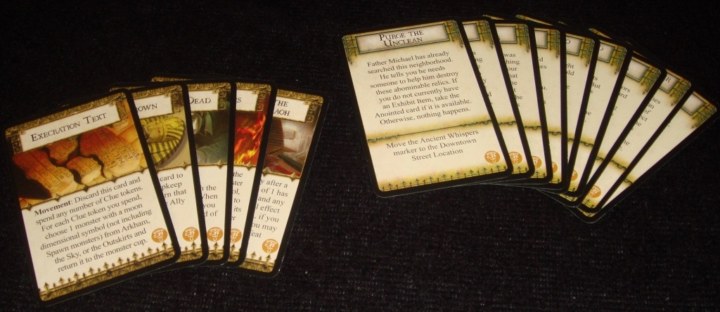 • Двойные символы на картах контактов. То есть по сути из 20 карт контактов на одну локацию, например, Данвича, только 8 относится непосредственно к данному дополнению, остальные же имеют символ ещё одного допа. Зачем всё усложнять, сетап-то и так не сахар. Понимаю, если бы эти контакты тесно переплетались по смыслу с указанными допами, но после беглого взгляда две трети из них можно было спокойно прикрутить к одному дополнению.