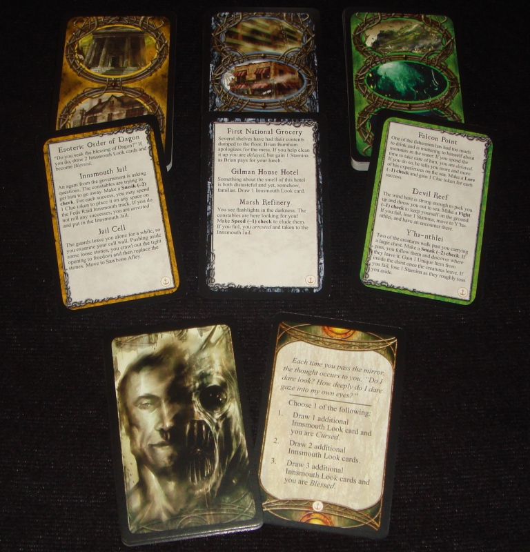 Карты локаций в Иннсмуте (60 шт.) и карты иннсмутского облика (5 шт.).