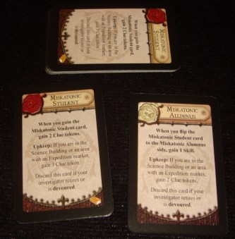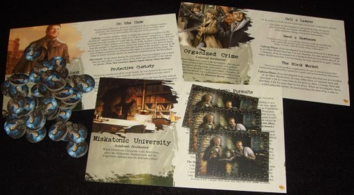 Жетоны и карты Студентов университета Мискатоник – это вспомогательные компоненты для игры с организациями.