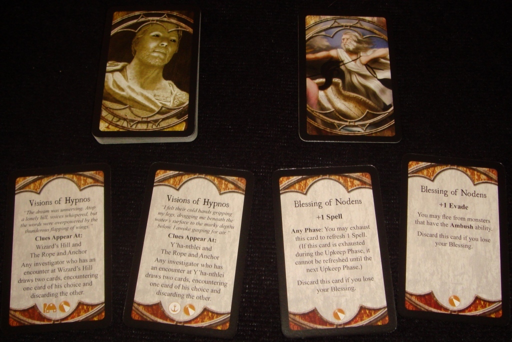Карты благословения Нодена (6 шт.) и карты видений Гипноса (16 шт.).