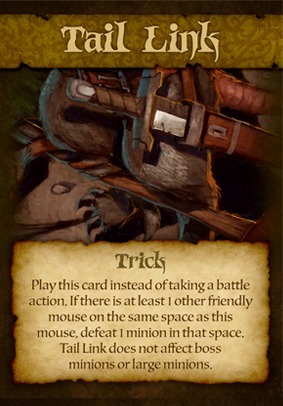 Любимое лакомство мышек нашло в игре несколько вариантов применения. Во-первых, с помощью сыра игроки могут активировать способности и развивать своих персонажей, а во-вторых, кусочки сыра выступают в роли таймера на специальном колесе продвижения по текущей истории. Игрокам каждый ход придётся серьёзно подумать, как распоряжаться основным ресурсом. Когда сырное колесо будет заполнено, то произойдёт наплыв врагов (как в Аркхэме), а также сократиться количество времени, отведённое на выполнение задач сценария.