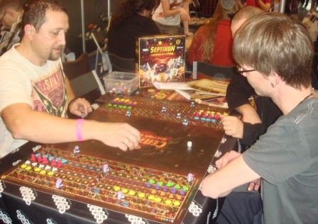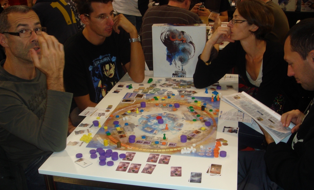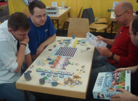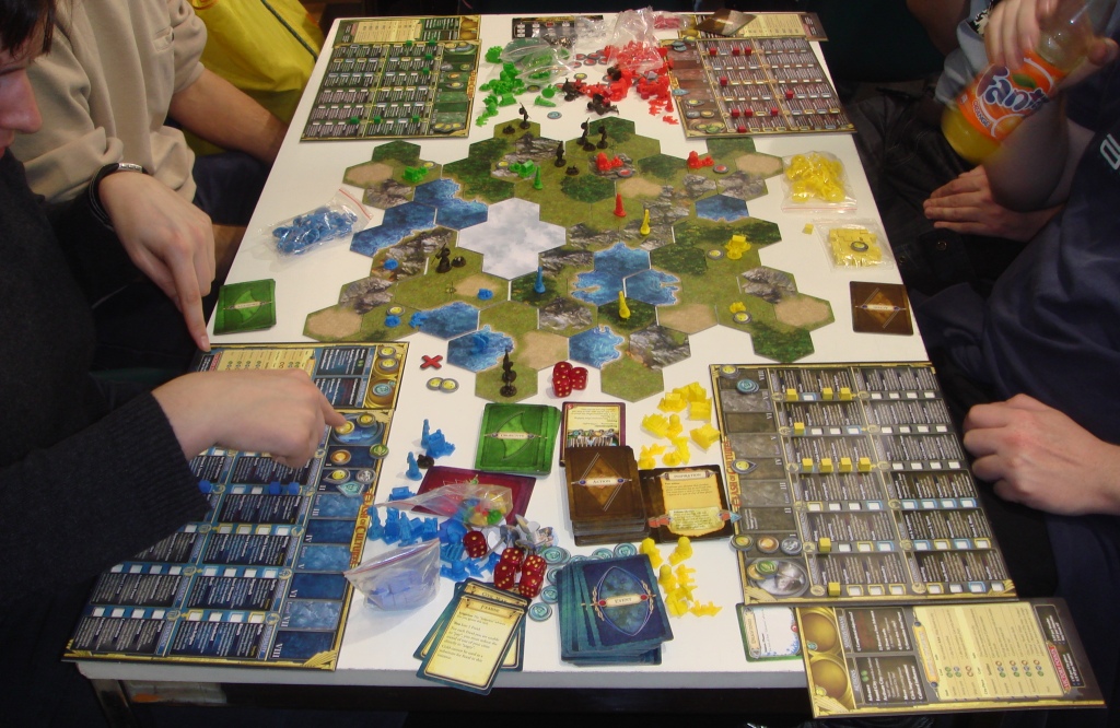 На третий день удалось “застолбить” партию в Seasons. Удивительно, что английская версия была одна на все столы. Партия была особенной, потому что играли мы с Нюсечкой и Юшиным (Блог Недомино). Ребята очень классные, с ними мы общались много, жалко было расставаться.
