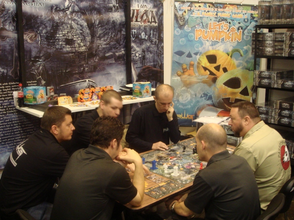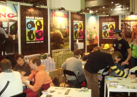 Стенд нашего издателя Brain Games располагался в 7 зале для новичков. Стоит отметить, что в сравнении с другими стендами, он был одним из лучших в плане оформления. Вдобавок, всем заинтересовавшимся ребята выдавали листовки с кратким описанием своих игрушек. Brain Games привёз 4 карточных филлера, удалось сыграть во всё, и было очень приятно, что почти все игры оказались достойными (ну разве что Construction Zone оказалась очень уж простенькой). Лично мне больше всего понравились Food Chain и Central Market.