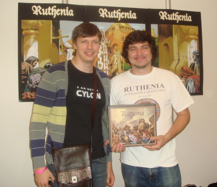 Там же в 7-ом зале расположились разработчики с Украины, Александр Тараненко и Денис Лоншаков со своей стратегической игрой Ruthenia.