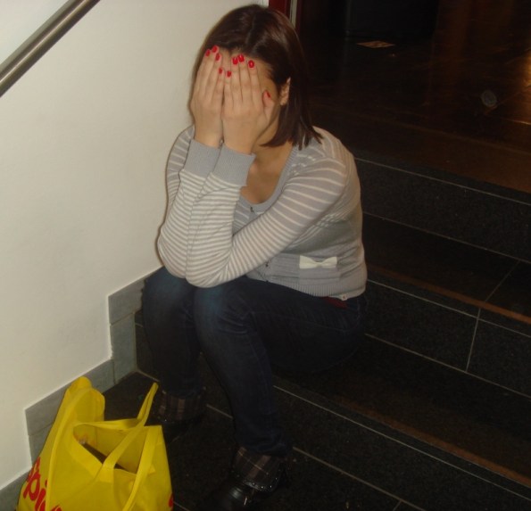У Кати уже нет сил ходить туда-сюда по залам, отдыхаем.