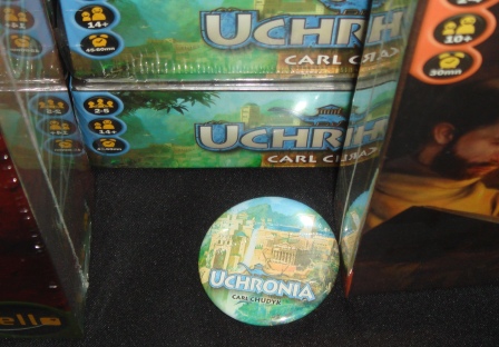 Чтобы понять, сколько же средств у нас останется на незапланированные покупки, с самого начала я пошёл собирать все предзаказы. Первым делом забрал на стенде IELLO дополнение к King of Tokyo: Power Up! и Uchronia. К Power Up! дали промо карту “Подарок Гарфилда”, с которой можно было в “приёмные” часы подойти к автору игры Ричарду Гарфиду, взять автограф и попросить его написать в качестве свойства любое, что взбредёт в голову. К Uchronia тоже дали несколько промок.