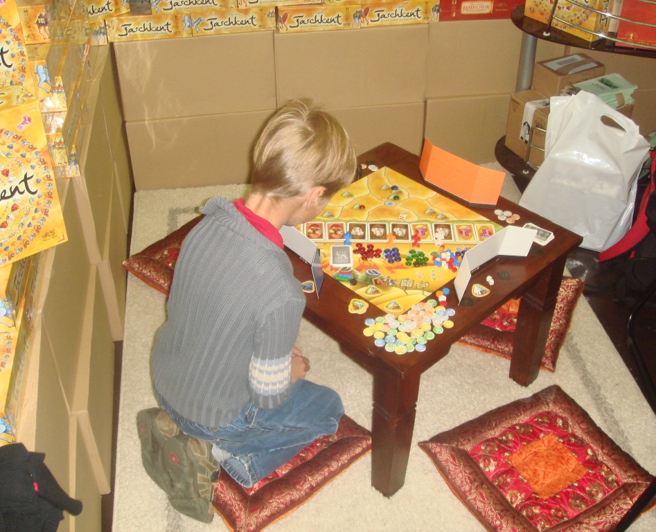 Кстати, о дешёвых играх. В Эссене было полно лавок подержанных игр, но ничего особенного я там не увидел – много старых абстрактных и детских настолок. Стенды магазинов тоже предлагают часть продукции по бросовым ценам, но среди таких игр в основном одна посредственность на немецком языке, поэтому что-то стоящее найти довольно трудно. И это понятно, магазины просто пытаются таким образом отчистить склады от неликвидного товара. Но, как говорится, кто ищет, тот всегда найдёт.