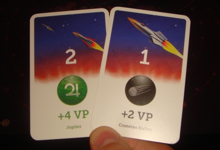 Игра заканчивается, когда кто-то из игроков вернулся на Землю, имея при себе не менее 7 жетонов посадки. Тогда все подсчитывают очки за планеты и выполненные миссии.