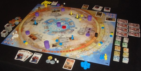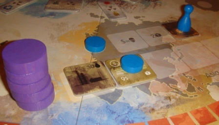 Давненько я не выкладывал фотообзоров, а тут просто не смог удержаться – уж больно мне приглянулся внешний вид нового творения от Vital Lacerda (автора Vihnos) CO2. Так что, не только тема загрязнения окружающей среды отличает эту евроигру от своих собратьев (описание игры с “компьютерными” картинками можно почитать тут), ещё в ней, на мой взгляд, очень стильное и “удобное” оформление: начиная с приятных пастельных тонов игрового поля и заканчивая большими деревянными дисками, цилиндрами и фишками.