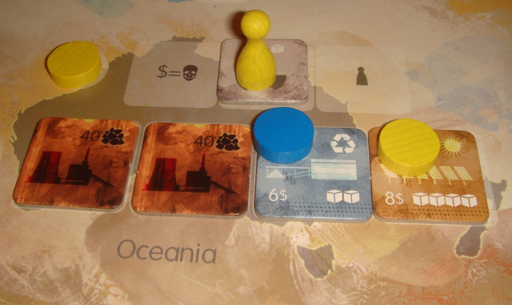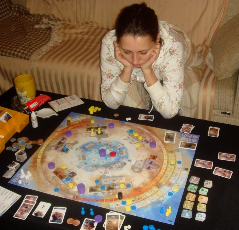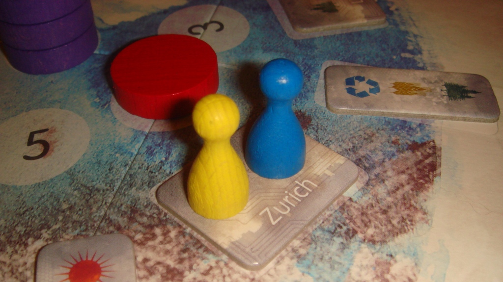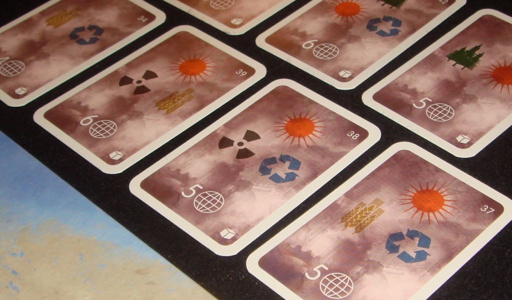 О впечатлениях пока говорить рано, за плечами только одна партия на двоих с Катей, но пока нам очень нравится, особенно то, что за спасение экологии все борются сообща, а надвижение глобальной природной катастрофы давит на протяжении всей партии. Не терпится разложить хотя бы на четверых (игрушка предназначена для 1-5 игроков). Надеюсь, что получится уже на следующей неделе, а пока предлагаю ознакомиться с фотографиями компонентов и последить за ходом нашей дуэльной партии. А там гляди и обзор подоспеет.