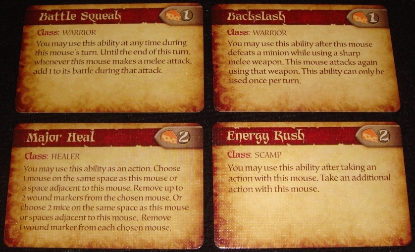 Но не все находки подойдут героям, нашедшим их. Дело в том, что каждый мышонок принадлежит к определенному классу, а у всех карт, будь они из колоды поиска или навыков, есть специальные требования. Если вам не повезло и карта не подошла, то награду можно сразу же сбросить за сыр, или позже передать товарищу соответствующего класса.