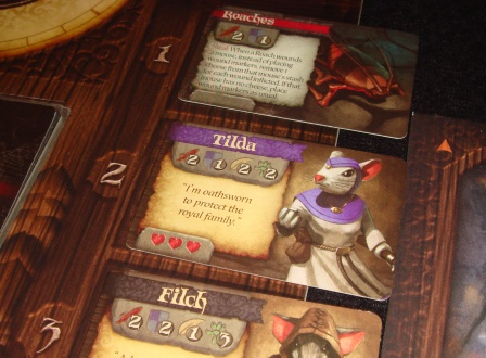 Обычно приключение начинается с того, что мышата появляются в одном из помещений замка и сразу же сталкиваются с врагами. Чтобы определить порядок хода, необходимо отобрать карточки инициативы всех присутствующих на тайле персонажей, перемешать их и выложить на соответствующий трек.
