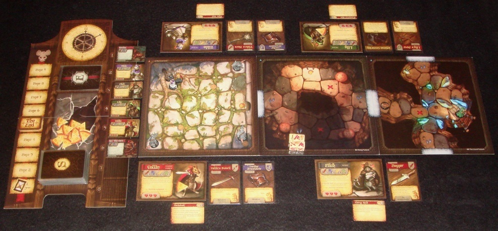 Понятно, что миссии в Mice and Mystics нужно играть по порядку, зачитывая все художественные вставки, которые превратили обычную брошюрку со сценариями в увесистую 50-страничную книгу историй. Но ещё интересней проходить игру в режиме кампании, когда герои могут переносить в следующую миссию все достижения и навыки, а также сохранять по 1 карте предмета.