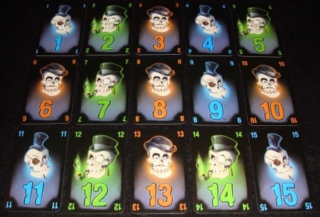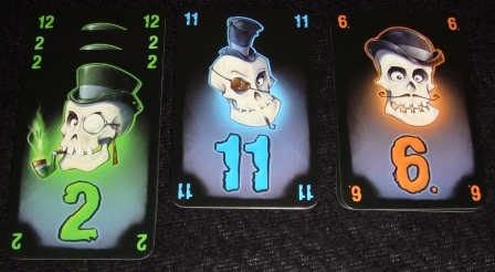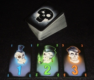 Малюсенькая коробочка с черепушками в шляпах на крышке, единственным минусом которой являются почему-то не до дна проделанные “хватательные” прорези под пальцы, скрывает в себе колоду карт с такими же черепушками и цифрами. Очередное скучнейшее “цифровое” карточное творение, – сперва думаю я, но позже ошибаюсь, творение оказывается играбельным и в меру весёлым.