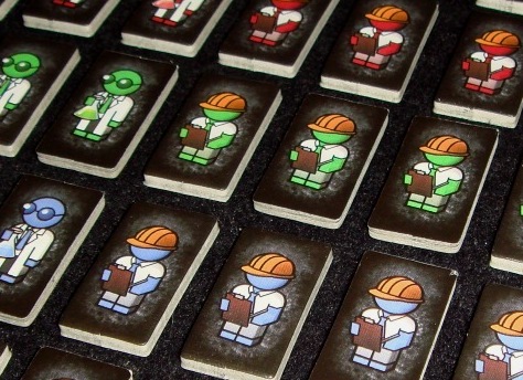 Отмечу, что в наших двух партиях мы ещё ни разу не ломали друг другу здания, хотя шпионажем пользовались активно. Самое увлекательное тут выстраивать эффективную цепочку на получение всего необходимого для постройки бомб. Интересно, что игру можно условно поделить на два этапа: первый – это обустройство собственного поля с целью наладить более-менее путное производство, а второй – это гонка за ядерным вооружением. Гонка происходит в буквальном смысле этого слова, так как из-за общедоступности зданий смастерить бомбы потенциально могут все. Так что в ключевой момент все погружаются в раздумья, ведь нужно не только распланировать своих рабочих, чтобы соорудить заветную бомбу, но и постараться наставить палок в колеса остальным. С планированием тоже не всё так просто, так как за ход можно или выставить рабочих, или собрать их с поля. Вот ты и думаешь, стоит ли звать всех домой и освобождать вкусные места сопернику, или придержать своих подопечных до лучших времён.