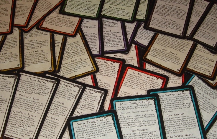 Карты благодеяний и порчи. Эти карты можно получить через некоторые контакты в Аркхэме или Других мирах. Подобно картам проклятий и благословений, они дают исследователю некие преимущества или, наоборот, усложняют ему жизнь. Например: карта “Разыскивается” заставляет героя быть более осторожным на улицах города – в противном случае его арестуют, а карта “Видение” позволит другому исследователю расстаться с заклинанием взамен на новые знания. Карты благодеяния и порчи имеют свои индивидуальные условия, при которых они прекращают действовать.