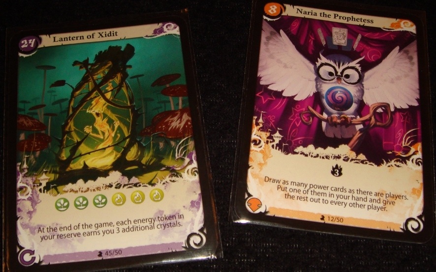 Свойства карт могут быть трёх типов – мгновенное (разыгрывается во время ввода в игру), постоянное (срабатывает при определённом условии) и активируемое раз за раунд. Причём, одна и та же карта может обладать тремя разными свойствами одновременно. Кстати, помимо эффектов, все карты сами по себе принесут победные очки – их количество указано в верхнем левом углу. Но случится это только в конце партии, о котором оповестит кубик-счётчик времени, сделавший три круга по центральному полю сезонов. К кристаллам, заработанным по ходу партии с помощью умелого и своевременного использования магических карт, прибавляют очки на выложенных картах. От результата отнимается 5 очков за каждую неиспользованную карту, оставшуюся в руке, а также штраф за активацию специальных действий. Игрок, набравший наибольшее количество кристаллов, празднует победу и объявляется Верховным Магом всея королевства.