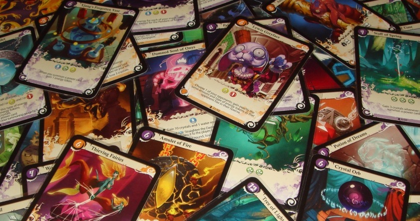 Карты бывают двух видов: фиолетовые – это магические предметы, а оранжевые – зверьки-фамильяры или по-нашему, союзники. Если предметы просто дают некие бонусы их хозяину, например, увеличивают вместимость хранилища или снижают стоимость розыгрыша карт, то союзники нацелены на взаимодействие между игроками, причём, в основном, на агрессивное – они отбирают ресурсы, воруют победные очки и даже уничтожают карты.