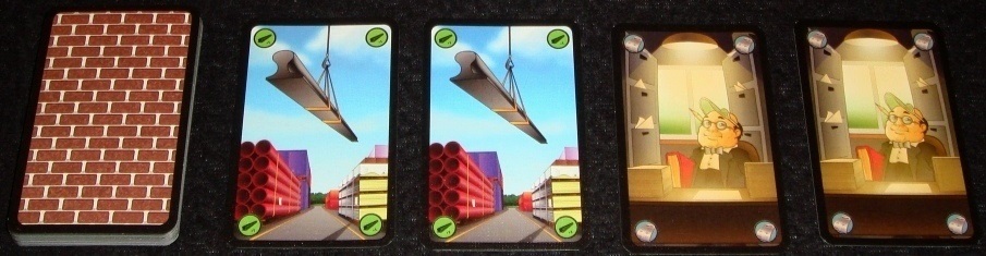 Оставшиеся обычные ресурсы (строительные материалы и бумажная работа со значением 1) перемешиваются, после чего из сформировавшейся колоды каждому раздаётся по 4 карты, и ещё 4 карты вскрывается и выкладывается лицом вверх – это так называемый рынок, отсюда по ходу партии игроки будут брать ресурсы. Оставшиеся карты обычных ресурсов рубашкой верх кладутся рядом с рынком. Гонка по застройке объявляется открытой!