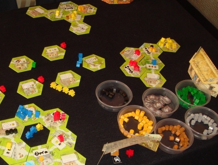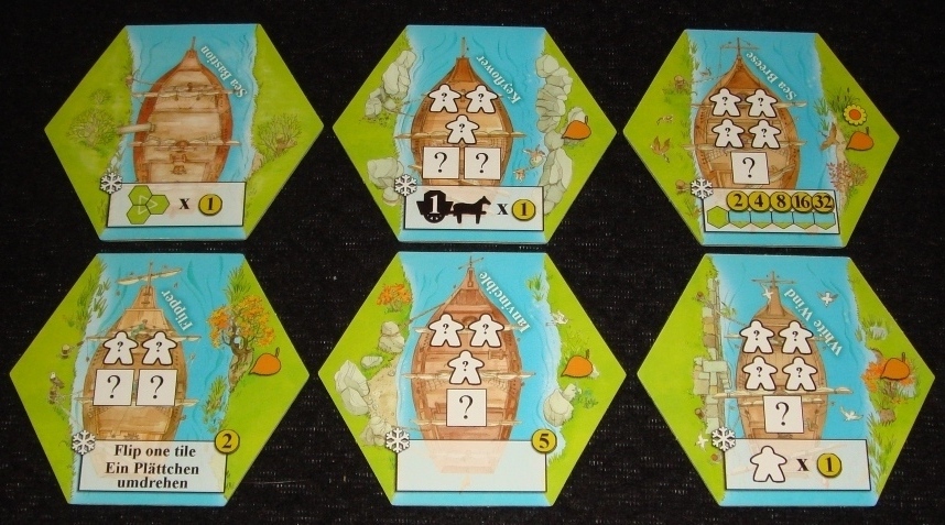 Итак, мы улучшили всё, что смогли улучшить, вдоволь поторговались, плодотворно поработали и благополучно спасовали. Остальные игроки сделали то же самое, что означает завершение раунда. Все выигрышные ставки уходят в мешок, все проигрышные – за ширмы. Также за ширмы идут все миплы, которые работали в деревнях и на полученных с аукциона тайлах. Новые тайлы тут же пристраиваются к ранее выложенным по принципу дорога к дороге, трава к траве, вода к воде. Наконец, исходя из ставок на тайлах порядка хода, новые поселенцы и жетоны навыков, прибывшие на лодках, распределяются между игроками. Там же определяется первый игрок на следующий раунд.
