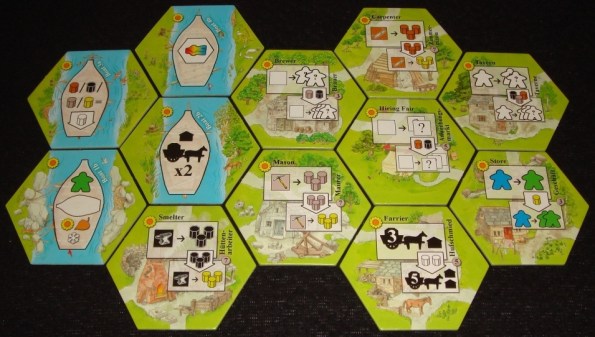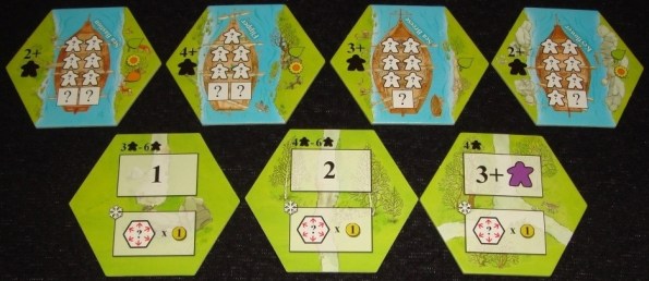 Тут стоит замолвить словечко про зелёных миплов. Изначально “зелёных человечков” можно получить только на соответствующих тайлах. Работают они также, как и обычные, просто относятся к редкому виду, что даёт их обладателю некое преимущество. Особенно это касается аукциона, когда, зная, что у соперников такого цвета уж точно нет, можно всего одной фишкой заполучить вожделенный тайл. Хотя беспроигрышным вариантом зеленые миплы остаются до поры до времени, т.к. после завершения ставок, они также отправляются обратно в мешок, и впоследствии могут быть вытащены случайным образом любым из игроков.