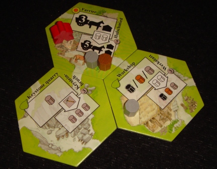 И в том и в другом случае, материал, используемый для улучшения, возвращается в общий резерв, а тайл переворачивается – теперь он будет работать на полную мощность, а в конце игры принесёт больше очков.
