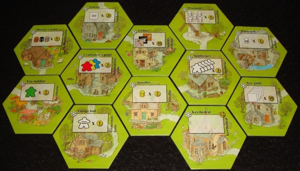 Keyflower вышла в свет благодаря совместной работе дизайнеров Ричарда Бризе и Себастьяна Блисдейла и является седьмой по счёту игрой в так называемой key-серии. Да что там серии, Keydom – это целый средневековый мир, придуманный Ричардом Бризе, в котором многие слова начинаются с key, а привычные рабочие-миплы (meeples) зовутся киплами (keyples). Честно говоря, до этого я мало чего знал о данной линейке игр, но после знакомства с Keyflower решил немного просветиться и взять на себя смелость сделать краткий экскурс в историю key-серии.